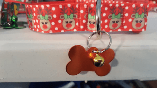Each collar comes with a plastic buckle in a festive and/or toning colour and features a metallic bone charm with a jingle bell so that every time your pup is on the move you'll hear the festive cheer.