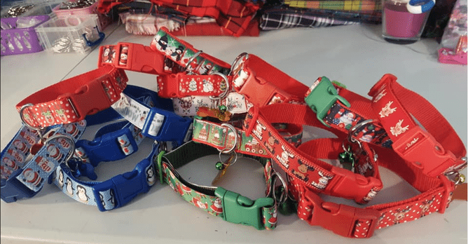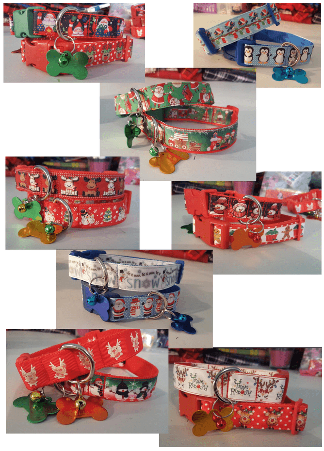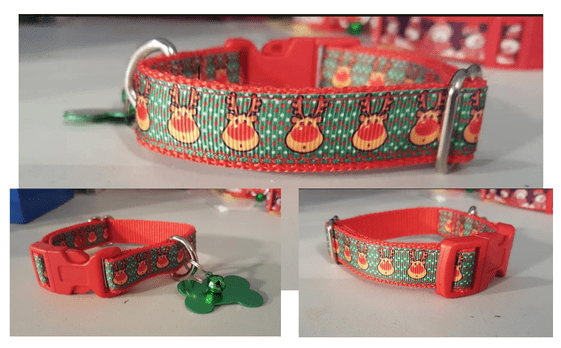 Each collar comes with a plastic buckle in a festive and/or toning colour and features a metallic bone charm with a jingle bell so that every time your pup is on the move you'll hear the festive cheer.