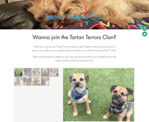 It is lovely to meet you, please do have a look through our Tartan Terrors Clan to see pictures of all our lovely doggie customers sporting their Tartan Terrors products. If you purchase from us, we would love to see pictures of your dogs so we can add them to our page so they too will be part of the Tartan Terrors Clan. You can send them to us on facebook or twitter, or email them to us.
