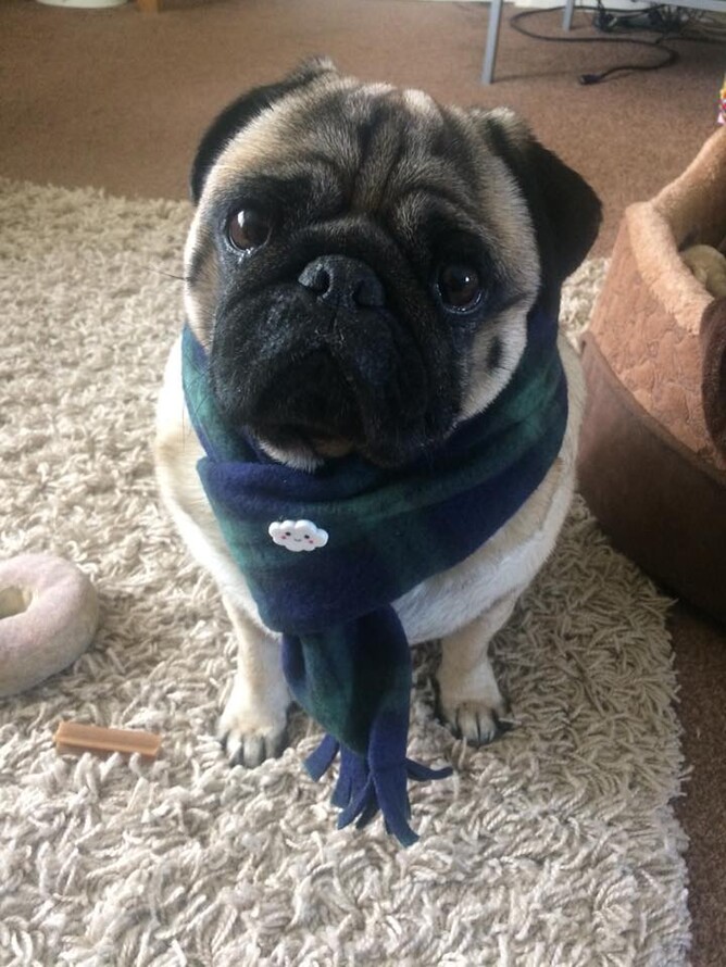 "Absolutely loved the scarves on sale at the ‘Dog Lovers Show‘ Wee George & Tommy made sure our boy Derek didn't miss out and sent us your way."